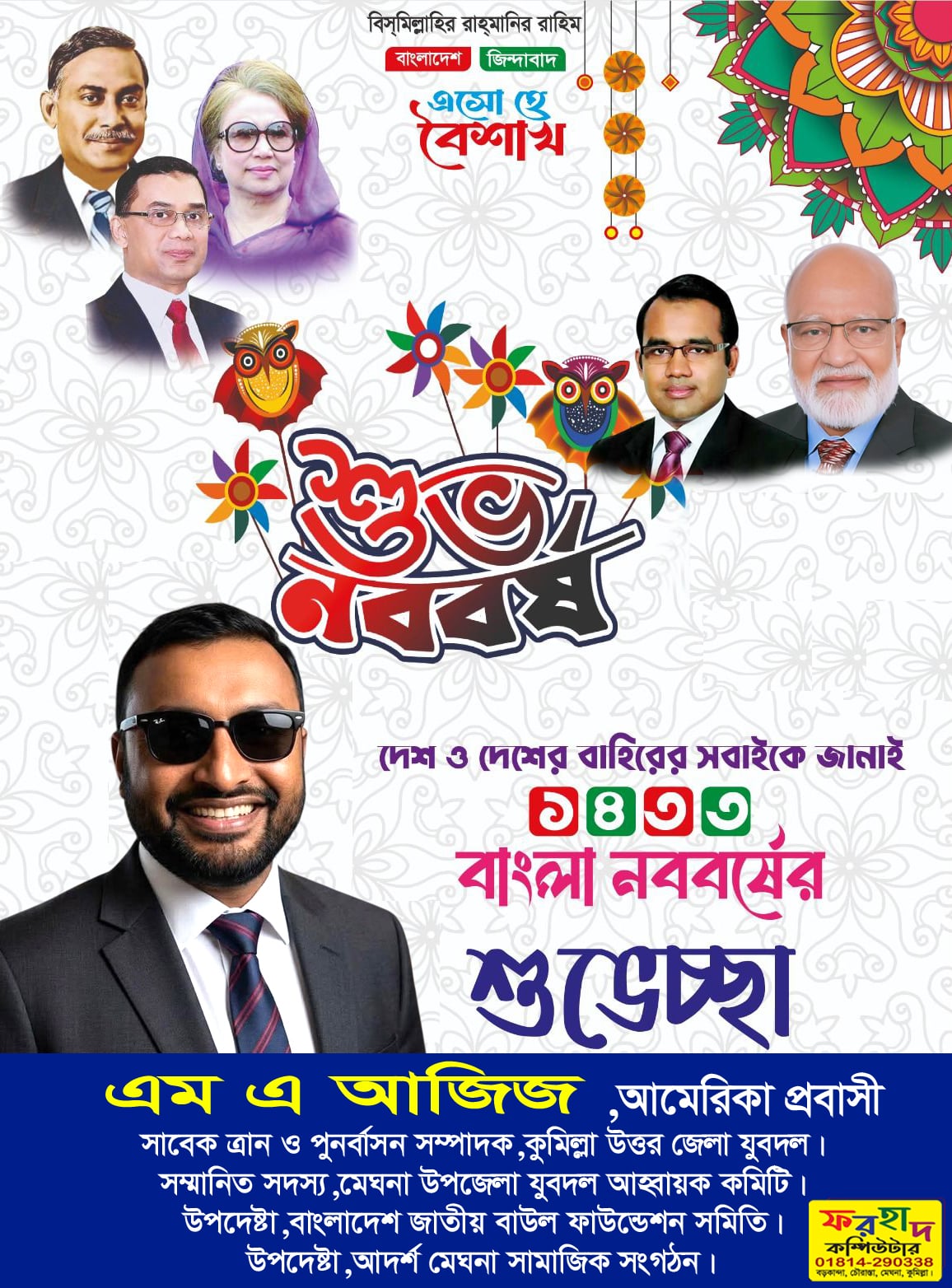আমেরিকা প্রবাসী এম এ আজিজ সকল দেশবাসীসহ সকল প্রবাসীদেরকে বাংলা নববর্ষের শুভেচ্ছা জানিয়েছেন