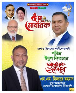 “দৈনিক মেঘনার খবর” এর এক শুভেচ্ছা বার্তায় তিনি বলেন, আমার প্রাণপ্রিয় মেঘনা উপজেলাবাসী ও প্রবাসে কর্মরত থাকা প্রাণের প্রিয় মেঘনাবাসী। আসসালামু আলাইকুম, ড. খন্দকার মোশারফ হোসেন স্যারের পক্ষ থেকে এবং মেঘনা উপজেলা বিএনপির ও আমার ব্যক্তিগত পক্ষ থেকে সকল মেঘনাবাসীসহ সকল প্রবাসী ভাই-বোনদের পবিত্র ঈদুল ফিতরের শুভেচ্ছা ও অভিনন্দন “ঈদ মোবারক”।