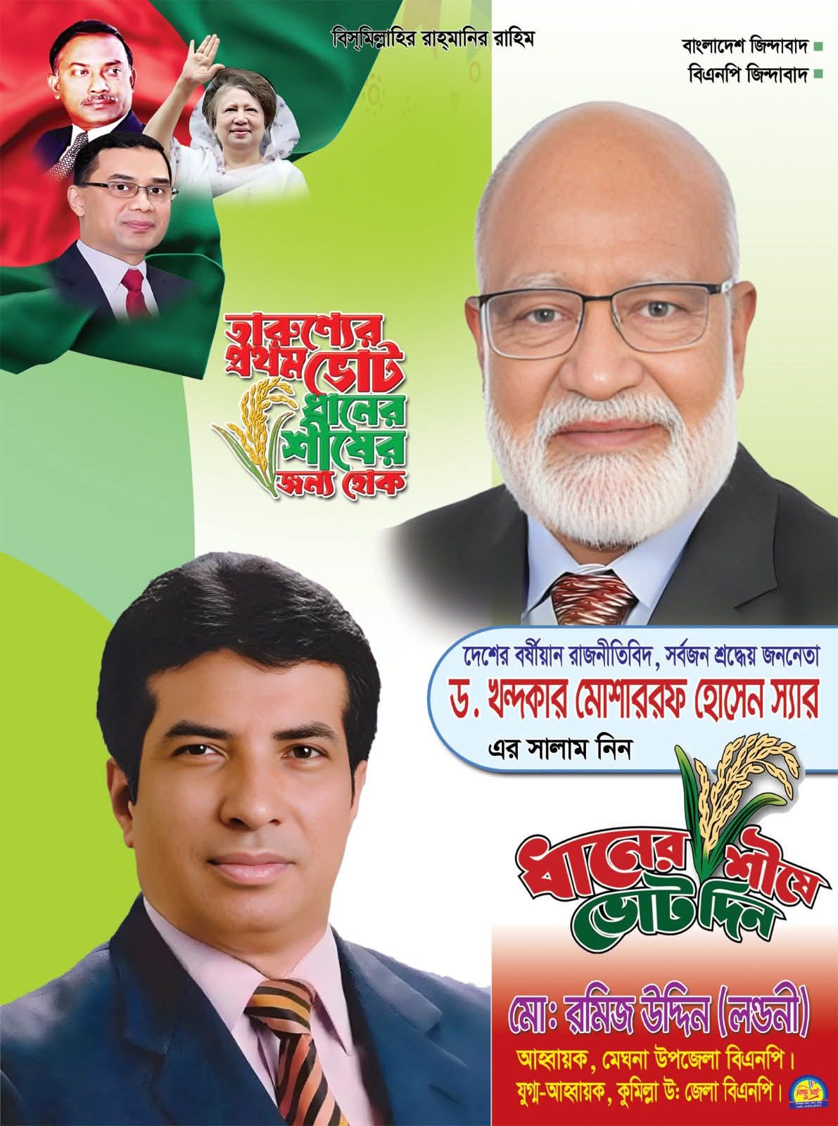 মোঃ নাজিম উদ্দিন, নিজস্ব প্রতিবেদকঃ- আসন্ন এয়োদশ জাতীয় সংসদ নির্বাচনে কুমিল্লা-১ (দাউদকান্দি -মেঘনা) নির্বাচনী এলাকায় বাংলাদেশ জাতীয়তাবাদী দল বিএনপির মনোনীত ধানের শীষের সংসদ সদস্য (এমপি) পদ-প্রার্থী বিএনপি'র স্থানীয় কমিটির সিনিয়র সদস্য, তিন বারের সাবেক সফল মন্ত্রী ও বীর মুক্তিযোদ্ধা জননন্দিত নেতা ড.খন্দকার মোশাররফ হোসেন এর নেতৃত্বে আগামীকাল ২৯ নভেম্বর ২০২৫ইং (শনিবার) বিকালে মেঘনা উপজেলার মানিকারচর এল এল উচ্চ বিদ্যায় মাঠে ঐতিহাসিক গণ-মিছিল অনুষ্ঠানে ড.খন্দকার মোশাররফ হোসেন কুমিল্লা থেকে মেঘনায় আগমন উপলক্ষ্যে মেঘনা উপজেলা বিএনপির সাবেক আহ্বায়ক ও কুমিল্লা উঃ জেলা বিএনপির সাবেক যুগ্ম-আহ্বায়ক মোঃ রমিজ উদ্দিন (লন্ডনী) এর পক্ষ থেকে স্বাগতম, আন্তরিক শুভেচ্ছা ও অভিনন্দন জানান।