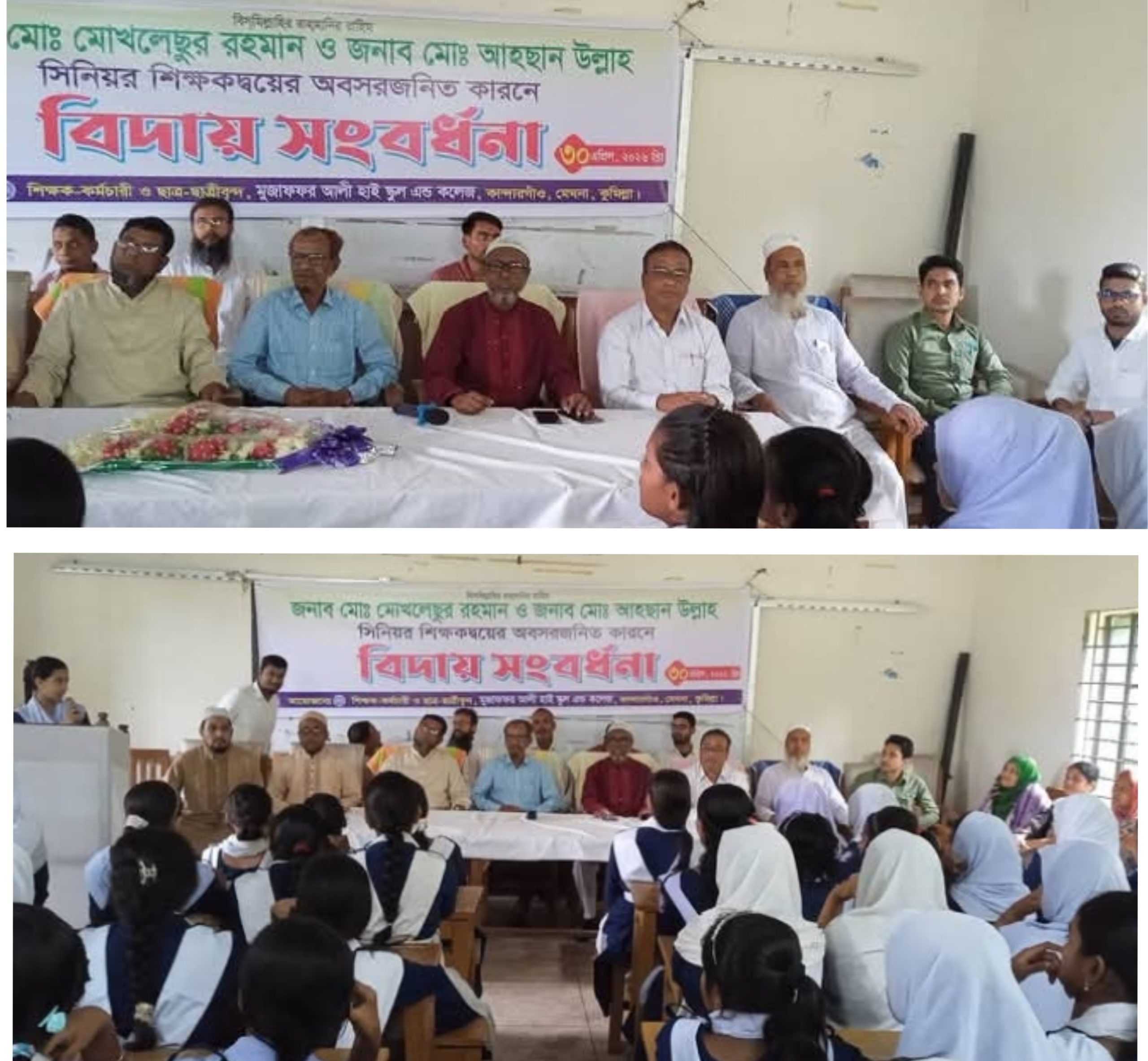 মেঘনায় মুজাফফরআলী হাইস্কুল এন্ড কলেজে অবসরজনিত বিদায় নিলেন দুই গুণী শিক্ষক