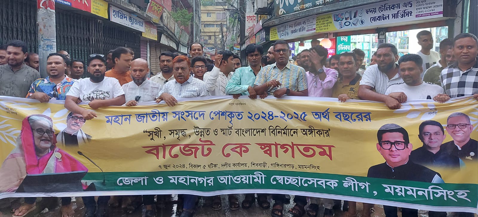 স্টাফ রিপোর্টার(ময়মনসিংহ): প্রস্তাবিত ২০২৪-২০২৫ অর্থ বছরের জাতীয় বাজেটকে স্বাগত জানিয়ে বাংলাদেশ আওয়ামী স্বেচ্ছাসেবক লীগের সভাপতি গাজী মেজবাউল হোসেন সাচ্চু ও সাধারণ সম্পাদক এ.কে.এম আফজালুর রহমান বাবু'র নির্দেশনায় ময়মনসিংহে আনন্দ মিছিল ও সংক্ষিপ্ত সমাবেশ অনুষ্ঠিত হয়েছে।