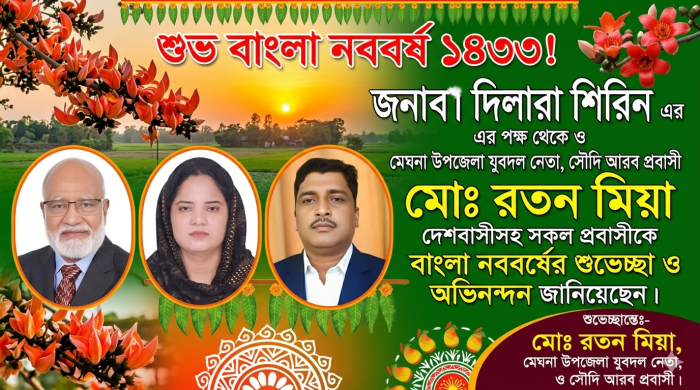 মোঃ নাজিম উদ্দিন, নিজস্ব প্রতিবেদকঃ- বিগত বছরের সকল গ্লানি হাসি কাঁন্না দুঃখ মুছে দিয়ে বাংলা নববর্ষের আহব্বানে ১৪৩৩-খ্রিষ্টাব্দ সনকে স্বাগত জানিয়ে মেঘনার “সাইনিং স্টার লার্নিং স্কুল” এর প্রতিষ্ঠাতা ও সৌদি