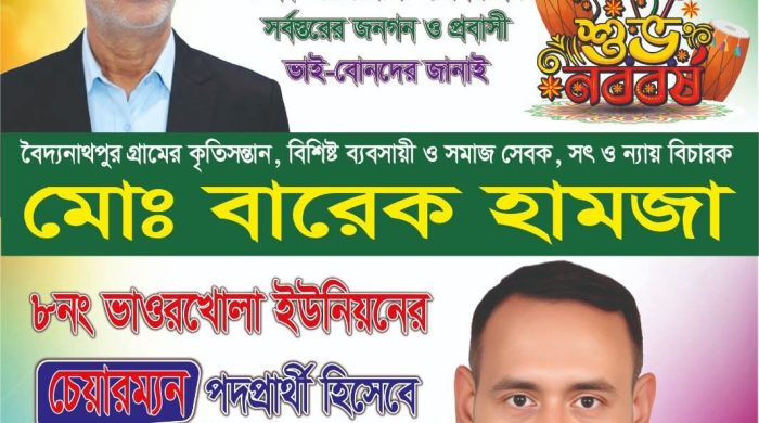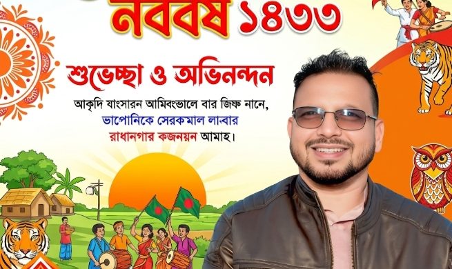 মোঃ নাজিম উদ্দিন, নিজস্ব প্রতিবেদকঃ- বিগত বছরের সকল গ্লানি হাসি কাঁন্না দুঃখ মুছে দিয়ে বাংলা নববর্ষের আহব্বানে ১৪৩৩-খ্রিষ্টাব্দ সানকে স্বাগত জানিয়ে দেশের সর্বস্তরের মানুষকে বাংলা নববর্ষের শুভেচ্ছা অভিনন্দন ও শুভ